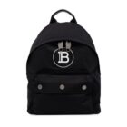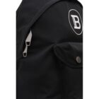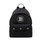 This backpack from Balmain is crafted with a smooth black nylon. The front of the backpack features a front pocket with a dual magnetic and zipper closure, and a white Balmain logo. The main compartment double zipper fastening opens to a spacious nylon interior with a slip pocket. This is the perfect backpack for school, work, or travel!