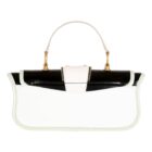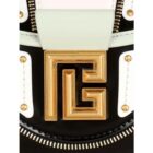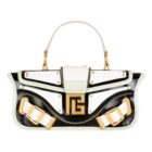 Introducing the Balmain Blaze Mint Green Leather Baguette Top Handle Crossbody Bag, exuding timeless elegance in a sophisticated multi color hue. This bag features an additional black leather strap that allows for effortless transition from crossbody to shoulder carry. The front flap, adorned with a magnetic closure for secure fastening, showcasing the iconic Balmain emblem. Inside, discover a thoughtfully designed interior with one internal patch pocket, providing convenient storage for essentials. Finished with gold metal hardware. Elevate your ensemble with the Balmain Blaze Mint Green Leather Baguette.