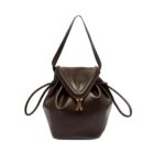 This Large Beak Handbag in brown is crafted in supple calfskin leather. This gorgeous brown leather handbag is the perfect every day bag to carry what you need day in and day out. The design a bucket style with drawstring closure as well as top handles and a shoulder strap.