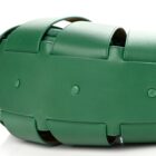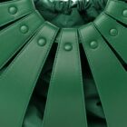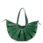 Have heads turning with the chic Bottega Veneta French Calfskin Shell Bag in beautiful Racing Green. This stylish shoulder bag is crafted of soft calfskin leather in a half moon cutout design. The bag has matching leather shoulder straps and an open top that leads to a brown suede interior with a matching removable drawstring nylon insert.