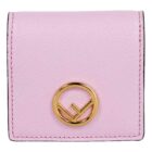 This mini bifold coin case from Fendi is crafted with Lavanda pink calfskin leather. The exterior flap features the F is Fendi logo with a gold finish that opens to a single compartment lined with smooth Lavanda pink leather. Store your coins in style with this elegant piece from Fendi!