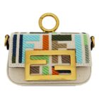 The Fendi Canvas FF Embroidery Nano Baguette Charm in Beige Multicolor is a miniature masterpiece that combines high fashion with playful charm. This tiny, yet eye-catching accessory features the iconic FF motif embroidered in vibrant, multicolor threads against a neutral beige canvas base. The design showcases Fendi’s signature style, blending luxury with a fun, eclectic twist.