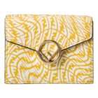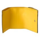 This trifold wallet from Fendi is not only fun, but functional. The exterior features a Mimosa yellow Vertigo FF design throughout. Inside, there is one bill slot and three card slots. The wallet also features a coin compartment to easily hold all your necessities. Grab this Fendi micro trifold wallet before it’s gone!