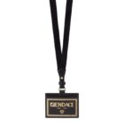 From the iconic capsule collection, this Fendace card case lanyard is ideal for travel, professional, or daily use. Easily access your most essential cards with the front and back card slots. Crafted from black calf leather, the front face features the Fendace logo printed in metallic gold. Complete with a detachable lanyard strap, experience the perfect blend of convenience and style with Fendace.