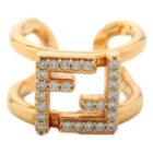 Elevate your style with the iconic Fendi FF Anello Gold and Crystal Embellished Ring, featuring crystal FF on gold-finish metal. This classic ring includes engraved decoration in the F is Fendi shape and decorated with natural crystals. Fashion-forward and elegant, this ring makes the perfect finish for any outfit. Gift this gorgeous ring or add it to your personal designer collection, only from Fendi.
