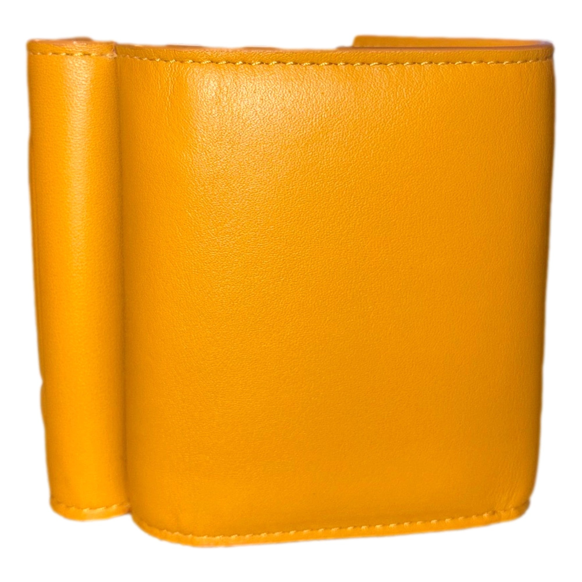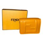 Refined elegance meets modern functionality in the Fendi FF Cube Trifold Wallet. Crafted in smooth golden yellow leather, this compact accessory is embossed with the iconic FF Cube motif for a subtle yet unmistakable signature. Thoughtfully designed with multiple card slots, a bill compartment, and a snap-closure coin pocket, it blends Italian craftsmanship with everyday practicality. A timeless piece that elevates the essentials with unmistakable Fendi sophistication.