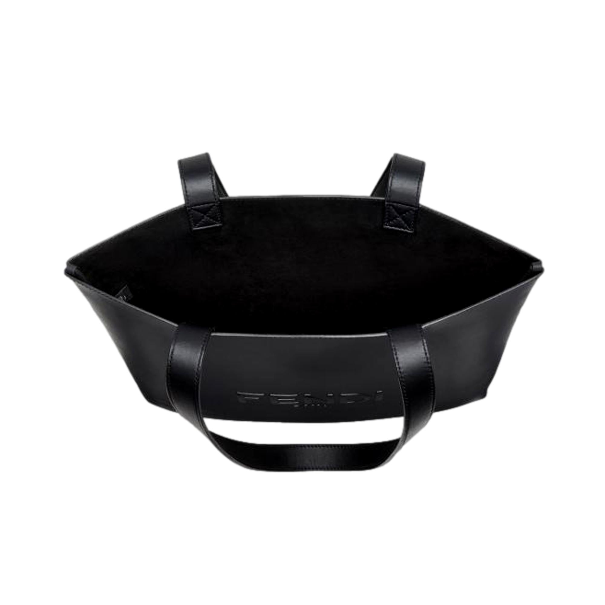 Introducing the Fendi Roma Embossed Logo Shopping Tote Bag. This beautiful black leather bag features two double handles and an open closure to provide space for your belongings. It is crafted with the sought after calfskin leather on the exterior as well as the interior. This bag is a perfect addition to any occasion. Whether you are on the go or keeping it casual, this is the bag for you.