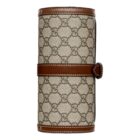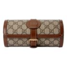 The Gucci GG Supreme Canvas Leather Beige Brown Watch Case is a sophisticated and stylish accessory designed to protect and showcase your luxury timepieces. Crafted from the iconic GG Supreme canvas, the case features the brand’s signature interlocking G monogram in a subtle beige and brown color palette, offering a timeless aesthetic. The combination of high-quality leather and durable canvas ensures both elegance and functionality. The interior is designed with soft lining to cushion your watch and safeguard it from scratches. Perfect for travel or storage, this case exudes the luxury and craftsmanship that Gucci is renowned for, making it a must-have for collectors and fashion enthusiasts alike.