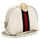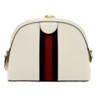 Elevate your style with the Gucci Ophidia Dome Crossbody, a timeless expression of Italian luxury. Crafted in supple cream white Sherry leather, this elegant silhouette is accented with the iconic blue and red Web stripe and finished with the luxurious gold-toned Double G hardware. Compact yet refined, the bag features a structured dome shape, premium beige microfiber lining, and an adjustable leather strap for versatile wear. A perfect fusion of heritage and modern sophistication — this is Gucci at its most iconic.