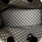 Elevate your collection with the Gucci Supreme Canvas Large Tote Bag, crafted from iconic beige canvas accented with navy calfskin trims. Featuring the distinctive Gucci logo print in a multicolor design, this spacious tote combines timeless style with practical luxury. Its durable materials and refined construction make it perfect for daily use, seamlessly blending sophistication and function. Ideal for carrying essentials while making a bold fashion statement.