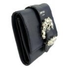 This Stunning Cheri Card Case from Jimmy Choo is crafted from Cosmos Blue calfskin leather and features a decorative crystal buckle. The single-snap flap opens to an interior which includes 6 card slots, one bill slot, two slot pockets, and a zipper pocket! Look effortlessly polished with this elegant piece from Jimmy Choo.