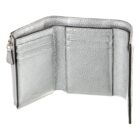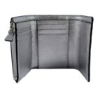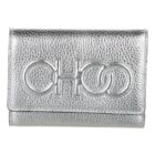 A luminous expression of modern elegance, the Jimmy Choo Loni Tri-Fold Wallet in silver embossed leather is a compact statement piece designed for those who seek sophistication in every detail. Crafted in gleaming metallic leather, the wallet shimmers with refined glamour, catching the light with every movement.