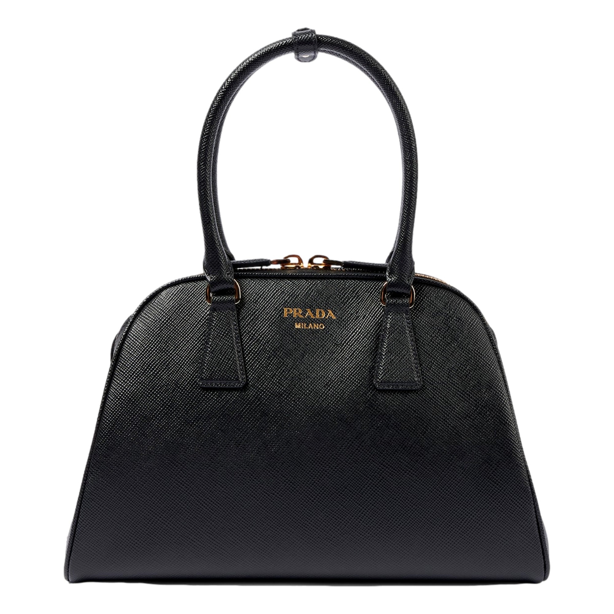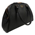 Elegant and timeless, this Prada Top Handle Handbag is crafted from luxurious Saffiano soft calfskin in a deep nero black. The structured silhouette is complemented by refined gold-tone hardware and signature logo detailing. Versatile and sophisticated, it transitions effortlessly from day to evening with enduring Prada craftsmanship.