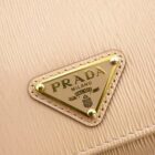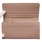 This classic Prada wallet is crafted from supple Cipria Beige vitello move leather and finished with a gold triangle logo plaque for an elegant look. Use it to organize your bills, credit cards, and coins with its various storage pouches. This wallet features ten credit card slots, six bill compartments, and a zipper pouch on the back. An exquisite piece, this continental wallet will elevate your everyday carry.