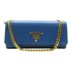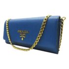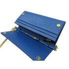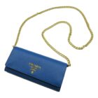 Elevate your look with this Prada Vitello Move Wallet on a Chain. This piece is crafted from beautiful cobalt blue Vitello Move leather, featuring the iconic gold Prada logo on the front face. The flap opens to a leather interior containing a zipper pocket, three bill slots, and six card slots. Wear this bag as a crossbody or remove the strap to carry as an elegant clutch.