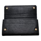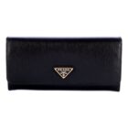 This classic Prada wallet is crafted from supple black vitello grain leather and finished with a gold logo plaque for an elegant look. Use it to organize your bills, credit cards, and coins with its various storage pouches. This wallet features ten credit card slots, six bill compartments, and a zipper pouch on the back. An exquisite piece, this continental wallet will elevate your everyday carry.