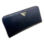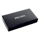 The signature Prada triangle logo on the front adds a touch of understated elegance, while the sleek silhouette ensures it fits comfortably in your handbag or can be carried on its own. With its perfect blend of style and functionality, this wallet is a must-have for the modern individual who appreciates both quality and design.