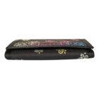 This Saint Laurent trifold chain wallet in black nylon features a colorfu print along with silver-tone hardware. The flap opens to five card slots, one zippered coin pocket, and one long bill slot. This slim and sleek trifold is perfect for everyday use, and will hold all of your daily essentials.